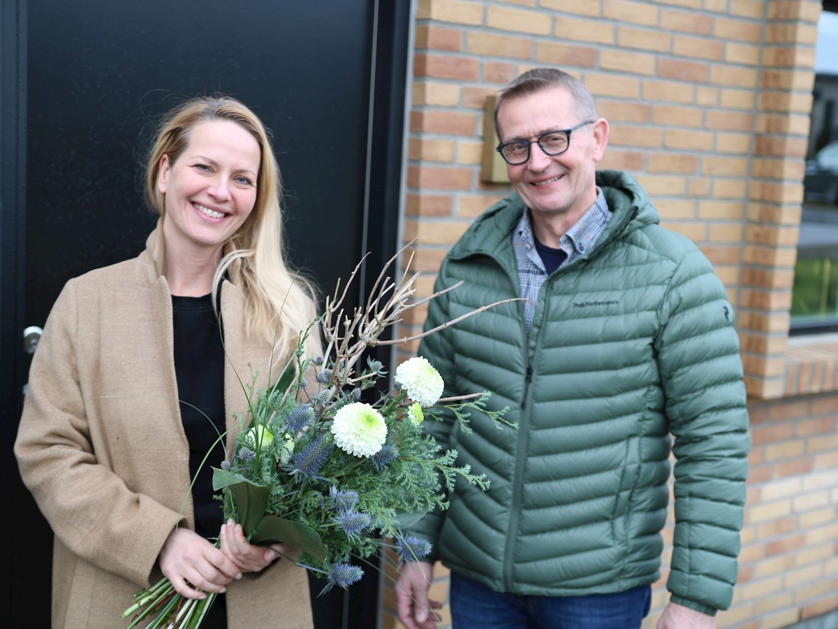 Fjernvarme er populært i Odder. Og for ganske nylig rundede Odder Varmeværk en vigtig milepæl. Vi bød nemlig velkommen til andelshaver nummer 5.000. Det er vi naturligvis både stolte over og glade for. Det skulle naturligvis markeres. Vores formand for bestyrelsen i Odder Varmeværk, Carsten Christensen lagde vejen forbi de nye andelshavere og overrakte en buket blomster. Det blev til en hyggelig snak over en kop kaffe i deres nybyggede hus i Præstelunden. Præstelunden er en af de nyere udstykninger i Odder by.
